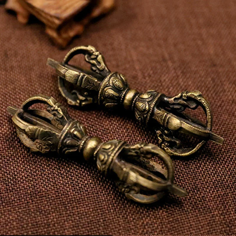 Buddha Stones Handmade Nepal Five Prong Three Prong Vajra Dorje Strength Copper Decoration