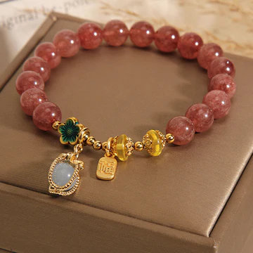 Buddha Stones Natural Strawberry Quartz Crystal Aquamarine Fortune Brand Love Bracelet