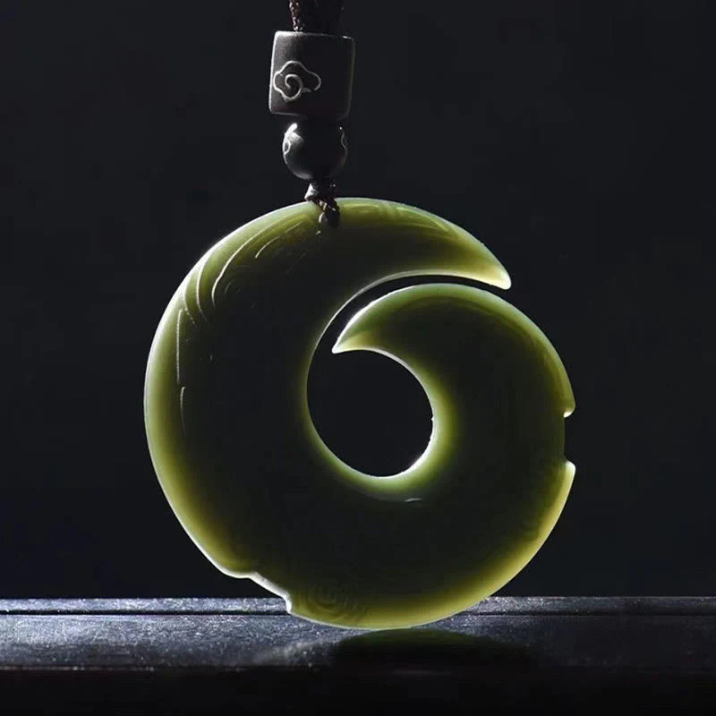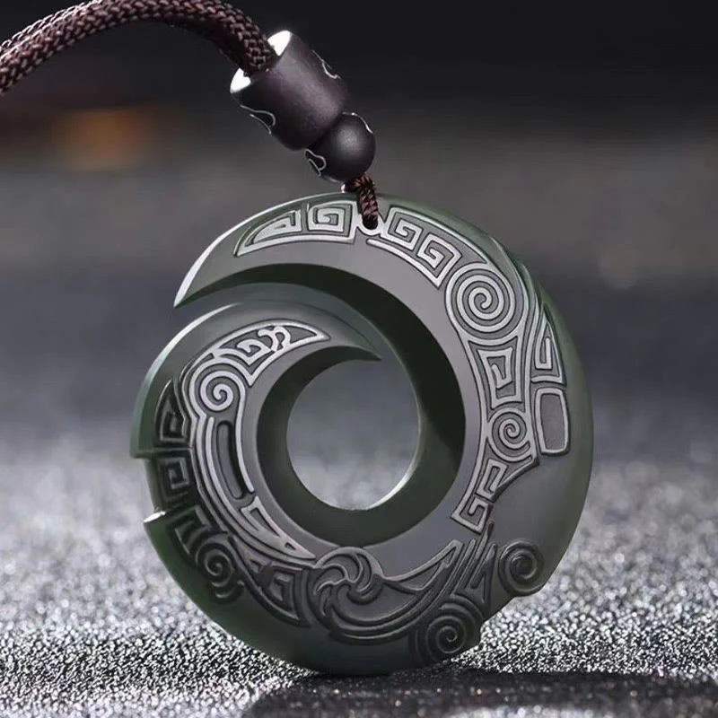 Buddha Stones One’s Luck Improves Design Patern Hetian Cyan Jade Peace Buckle Luck Necklace Pendant
